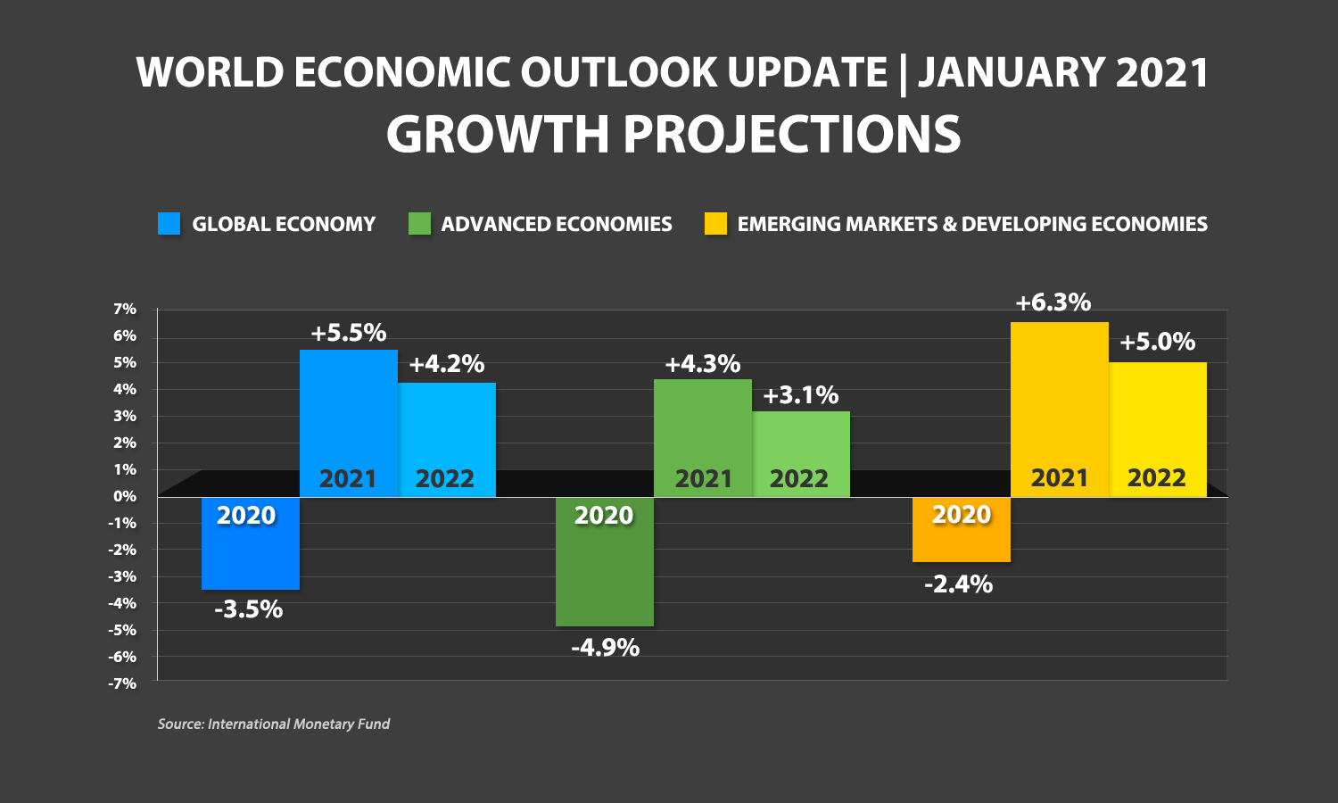 Global economy is at a critical juncture, according to the latest report from the IMF. While rollout of vaccines will boost growth, economic recovery will be shaped by the extent of further policy support, the roll-out and effectiveness of vaccines. Renewed waves and new variants of the virus represent the principal threats to a return to economic growth.
