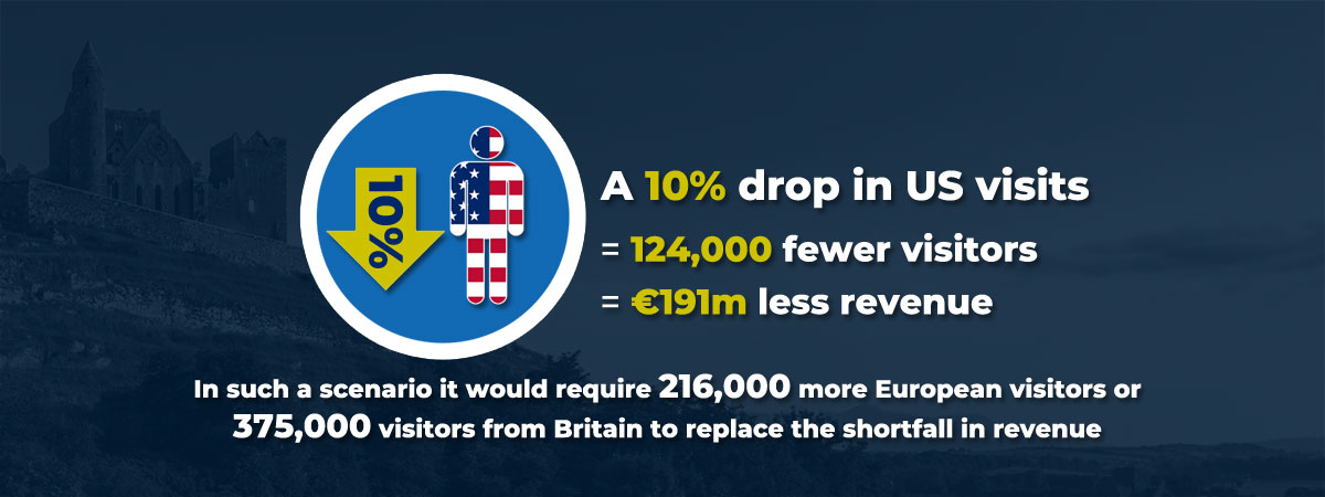 A 10% decline in visits from the US would equate to 124,000 fewer US visitors and a reduction in visitor expenditure of close to €191m.