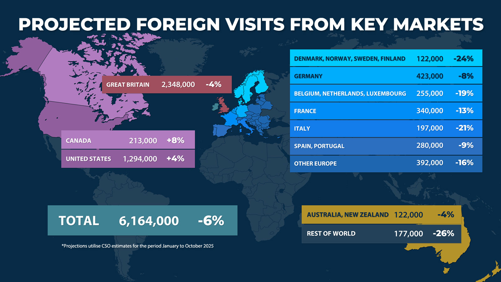 It should be noted that international forecasters, Tourism Economics, predict that inbound travel to Northern Europe (the region including Ireland) is set to grow 4.7% in 2026. As always the strength of source market economies is critical and the IMF's latest projections show modest growth.