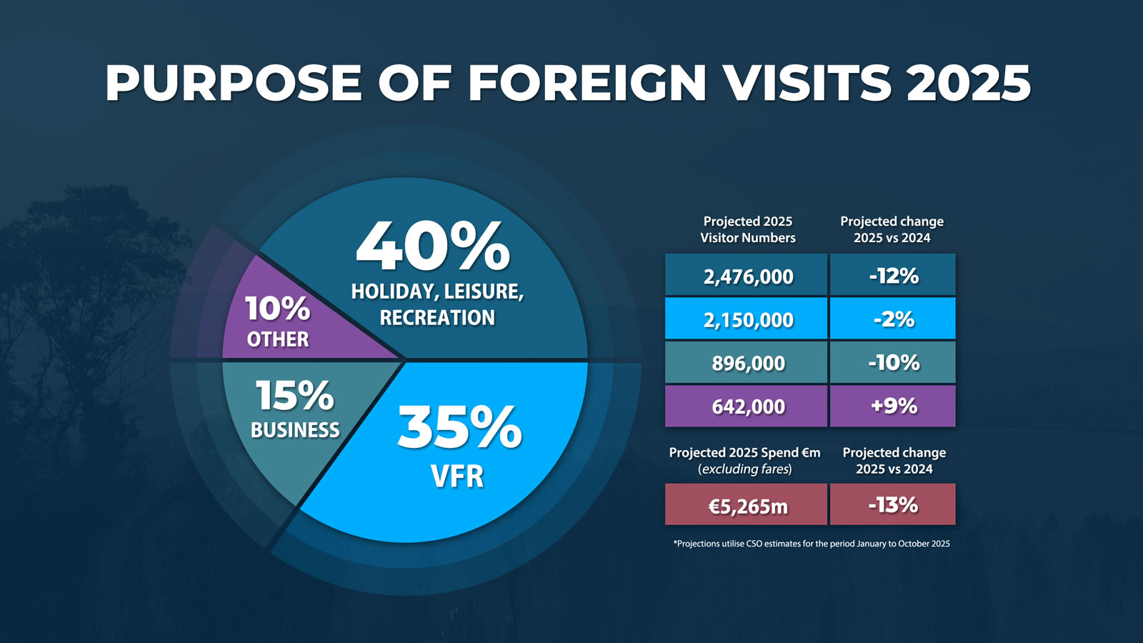It is hoped that 2026 can see growth in tourism revenue, both domestic and international, and that some of the data gaps apparent in official statistics can be plugged with the State adopting new intelligence sources to bolster policy decisions. Costs of business will continue to put pressure on business but hopefully demand stays solid while the capacity constraints at home are addressed. New registered accommodation stock should be incentivised, a fair regulation of tourism short term rentals needs to be devised, infrastructural delivery from internal connectivity to EV charging points has to be expedited, and the passenger cap at Ireland's main gateway must be lifted to allow for capex development to commence without delay.